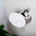 Upang makatipid ng puwang sa isang maliit na silid, mas gusto ng maraming mga may-ari ang mga tirahan na naka-mount sa pader para sa mga alagang hayop, lalo na kung isasaalang-alang natin ang katotohanan na ang lahat ng mga pusa ay gustung-gusto na sakupin ang isang mataas na posisyon na puwang sa isang apartment. Ang isang istrakturang matatag na base ay karaniwang nakaangkla sa ibabaw ng dingding sa pagitan ng dalawang mga anak at isang istante. Para sa higit na ginhawa, ang ibabaw ay natapunan ng mga tela o iba pang materyal na kaaya-aya na hawakan. Upang gawing madali para sa isang pusa na umakyat sa bahay, dapat kang maglagay ng maraming komportable at malawak na mga hakbang sa dingding o gumawa ng isang sulok na bahay na may maraming mga sahig.