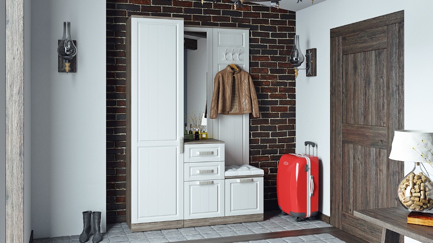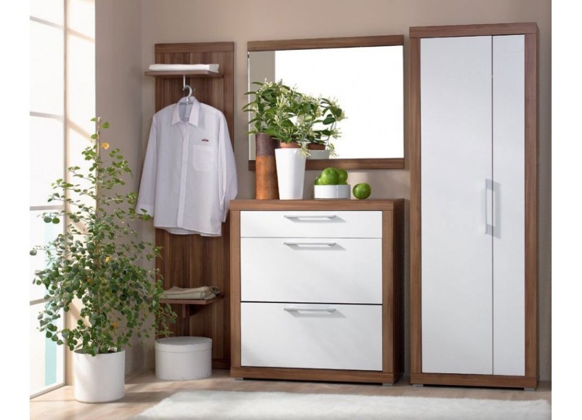 Isang laconic na hanay ng mga kasangkapan sa bahay para sa isang maliit pasilyo