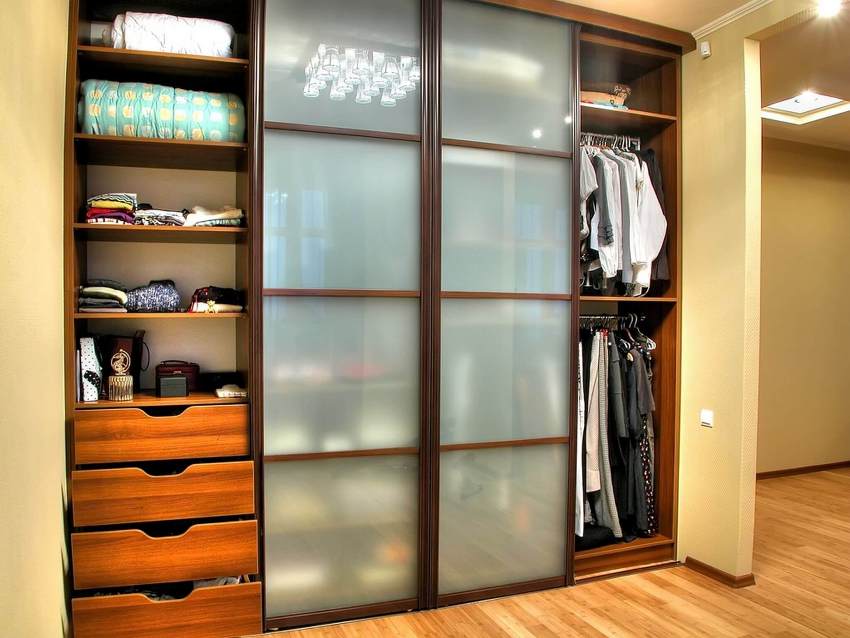 Ang pangunahing bentahe ng isang aparador para sa isang maliit na silid ay ang espesyal na disenyo ng mga pintuan, na gumagalaw kasama ng mga gabay at hindi nangangailangan ng isang hiwalay na puwang kapag binubuksan ito.