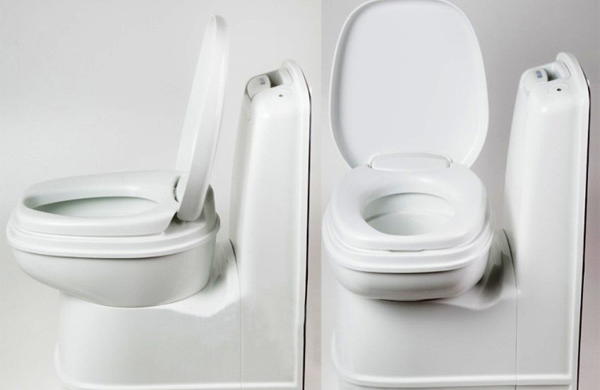 Ang pinaka portable at pinakamurang pagpipilian ay mga mobile toilet na ginawa sa Sweden. Ang medyo maliit na istrakturang ito ay binubuo ng isang metal, hindi kinakalawang na asero na frame at isang pelikula na matatagpuan sa ilalim ng upuan. Matapos ang bawat paggamit ng dry closet, pinagsiksik ng mga espesyal na roller ang pakete, na walang iniiwan na silid para sa mga amoy na tumalim sa silid. Ang isang rolyo ng espesyal na pelikula ay maaaring magamit nang hanggang sa 200 gamit.