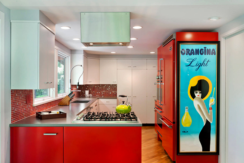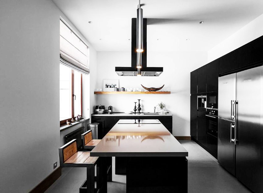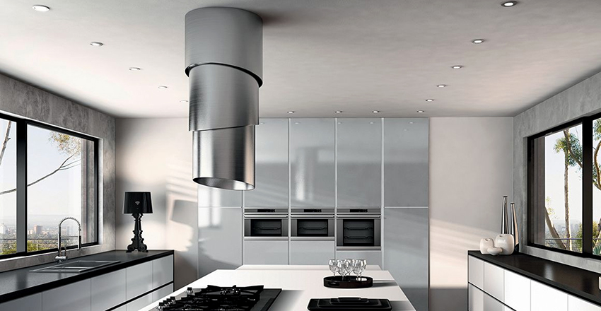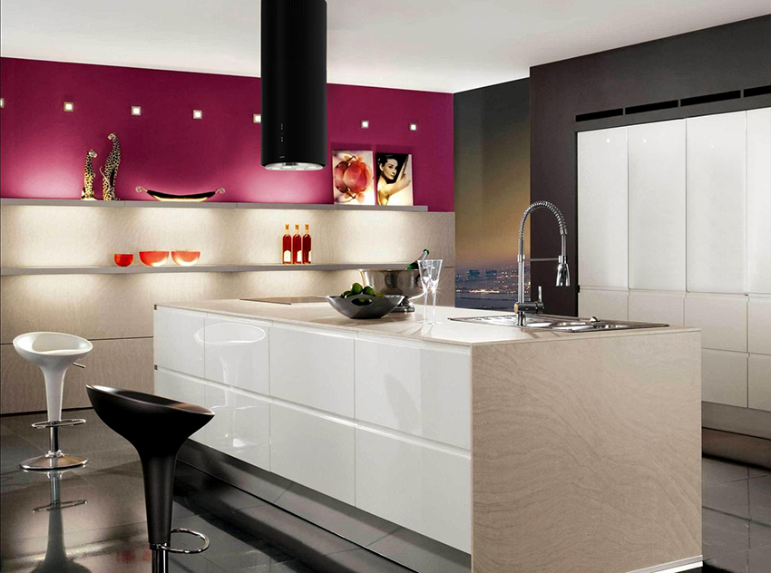 Matapos matingnan ang larawan ng mga hood ng kusina sa interior, madaling mapansin na ang mga modelo ng silindro ay mas naaangkop sa isang istilong pang-high-tech na gumagana, na-verify na modernidad, at mahinhin na minimalism.