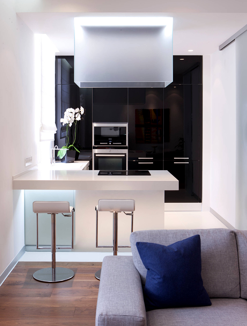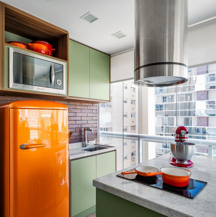 Ang isang maliit na lugar ng kusina ay hindi isang pangungusap. Ang isa ay hindi dapat tanggihan mula sa panloob at pagganap na mga makabagong ideya, kinakailangan lamang na makatuwirang itapon ang magagamit na puwang. Mayroon ding maliit na mga hood ng isla para sa mga maliit na silid. Inirerekumenda na iwasan ang mga domestic model. Tila malaki ang mga ito sa isang maliit na puwang.