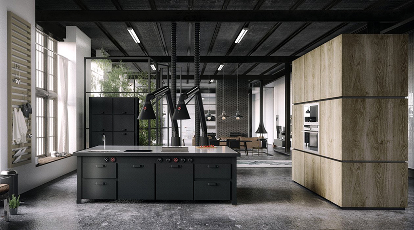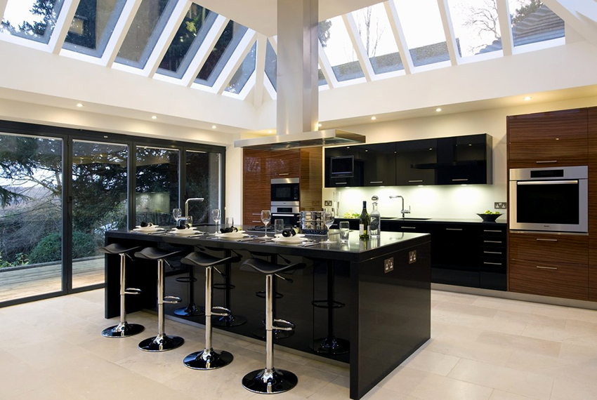 Ang mga kusina na may uri ng isla ay madalas na nilagyan ng mga maluluwang na silid. Ang magkakahiwalay na mga ibabaw ng trabaho ay mayroon ding mga makabuluhang sukat. Ayon sa kanilang mga sukat at alinsunod sa kinakailangang pag-andar, isang yunit ng paglilinis ng hangin ang napili. Ang pinaka-katanggap-tanggap na modelo ng isang uri ng hood ng isla sa mga naturang kondisyon ay isang simboryo.