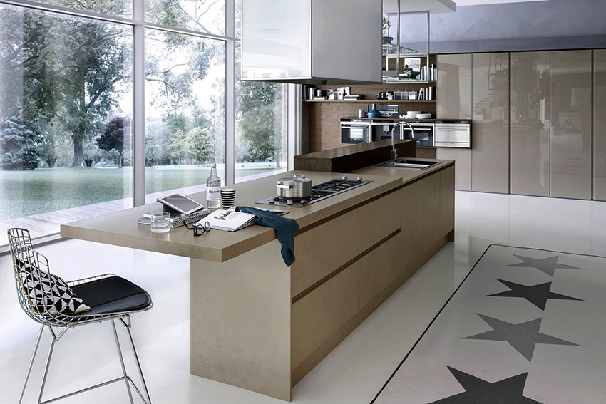 Ang mga kusina sa isla ay naging totoong kaalaman sa industriya ng interior sa kusina. Ang kanilang pagiging kakaiba ay nakasalalay sa ang katunayan na ang isang makabuluhang bahagi ng gumaganang ibabaw mula sa dingding ay lumipat sa gitnang zone ng silid o lumipat sa isa sa mga gilid, ngunit tiyak na ito ay naging isang walang bayad na yunit ng kasangkapan, tulad ng isang isla. Ang lugar ng kapanganakan ng pamamaraang ito ng pagbibigay ng silid ay ang Italya.