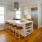 Ang pag-andar na layunin ng isla ay maaaring magkakaiba. Ang ilan ay naglalagay ng isang hob dito, maglagay ng oven sa mas mababang bahagi.Ang isang lababo, isang lugar para sa umaga ng kape, isang lugar ng kainan ay maaari ding mailagay sa isang istraktura ng kasangkapan na sumasakop sa isang sentral na posisyon sa kusina. Kung mayroong isang hob, pagkatapos ay naka-install ang isang hood sa itaas ng isla.