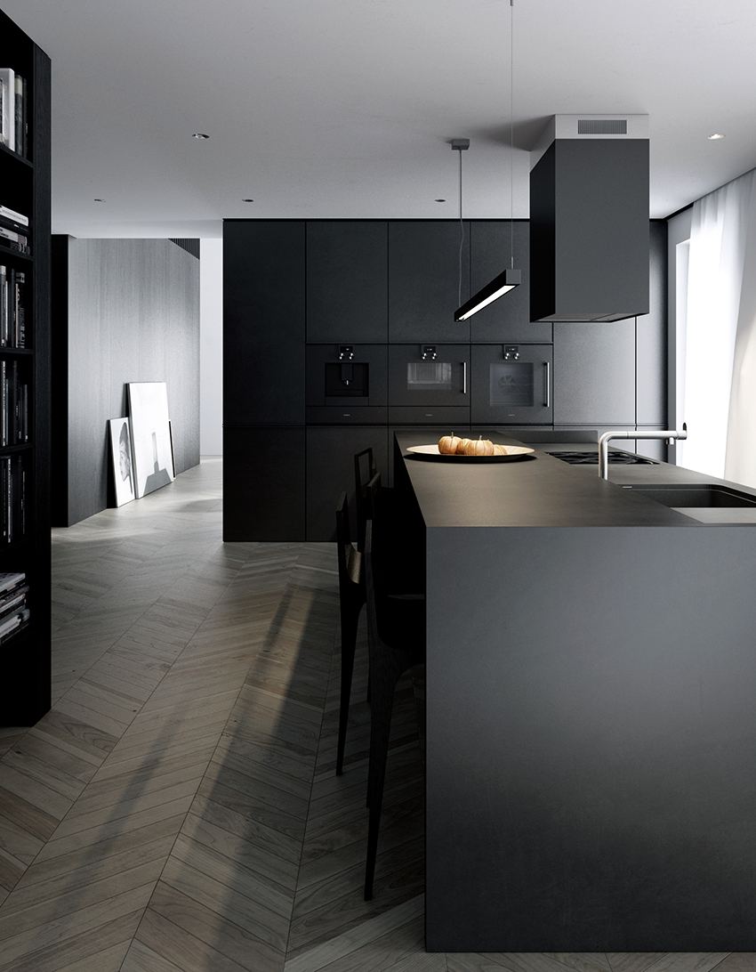 - ang posibilidad ng pag-hang sa ibabaw ng isang lugar ng trabaho sa isla sa mga silid ng anumang laki;
