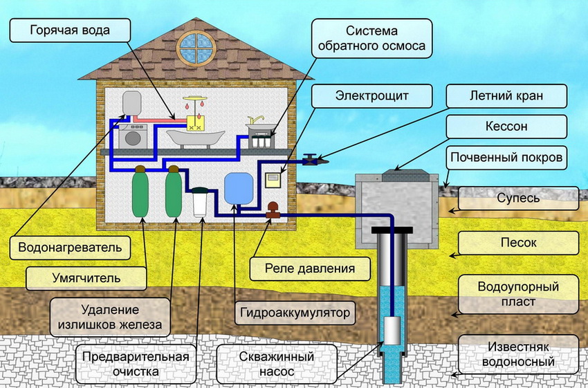 Ang supply ng tubig ng isang pribadong bahay mula sa isang balon: scheme ng komunikasyon