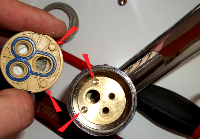 Kung mayroong isang creak o hum sa panahon ng pagpapatakbo ng panghalo pagkatapos palitan ang kartutso sa gripo, ipinapahiwatig nito na ang aparato ng pagla-lock ay hindi tugma sa laki. Dahil sa ang katunayan na ang diameter ng outlet ng balbula ay mas maliit kaysa sa outlet nito o ang tangkay ay masyadong mahaba, ang pingga ay hindi paikutin nang normal sa paligid ng axis. Ang sitwasyon ay maaaring maitama nang eksklusibo sa pamamagitan ng pagpapalit ng kartutso.