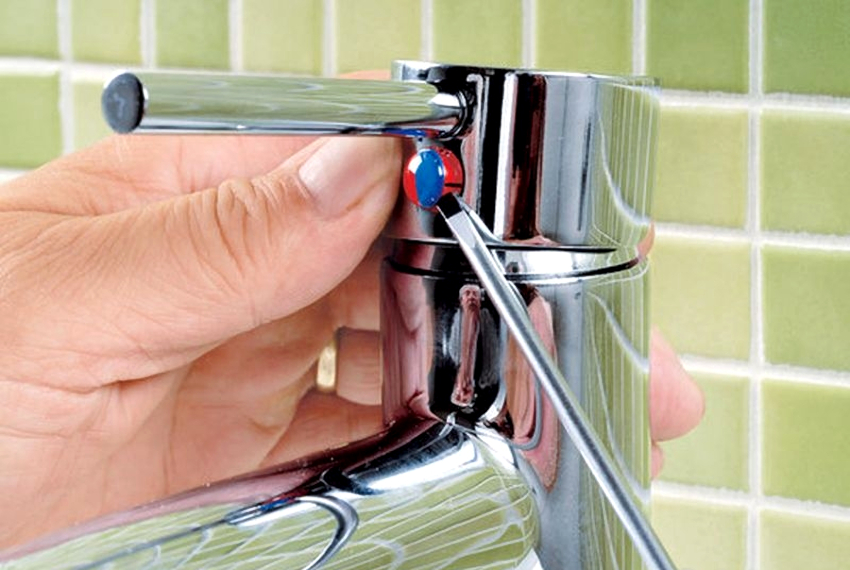 Sa unang yugto, ang supply ng malamig at mainit na tubig ay nakasara, na makakaiwas sa pagbaha. Mayroong pandekorasyon na plug sa ilalim ng pivot arm, na simpleng ipinasok sa butas. Upang matanggal ito, kailangan mo ng isang distornilyador, kung saan kailangan mong hilahin ang elemento.