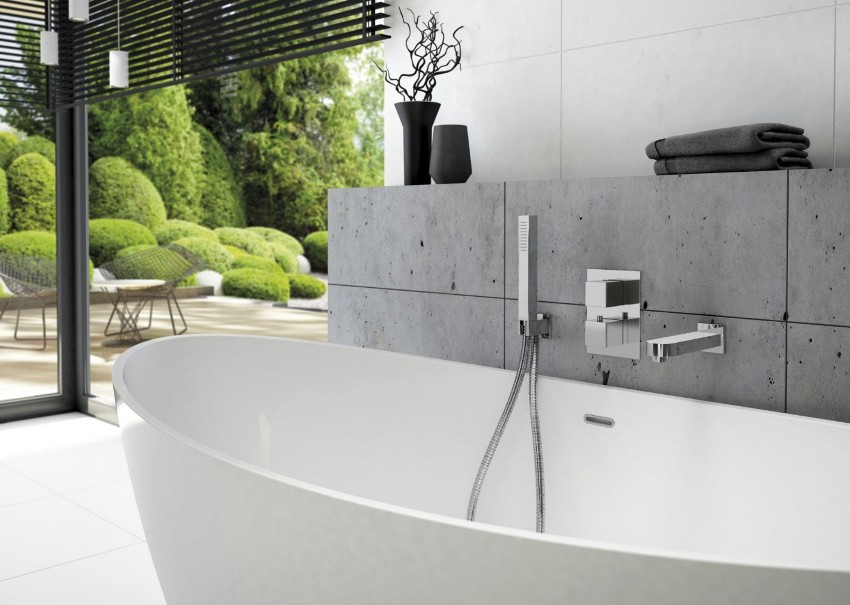 Kapaki-pakinabang na payo! Para sa shower, maaari kang mag-install ng isang unibersal na mixer ng thermo na may mahabang spout o isang modelo ng cascade na nagbibigay ng isang malawak na strip ng daloy ng tubig.