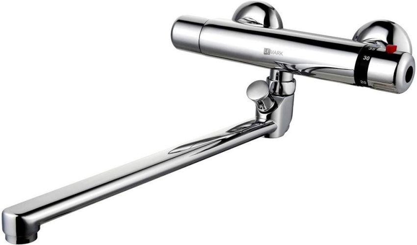 Ang isang mahusay na modelo na may mahabang spout ay ang Lemark Thеrmo LM7734C thermostatic mixer. Ito ay isang maraming nalalaman aparato na nilagyan ng isang mahabang medyas na may isang lata ng pagtutubig. Ang pagpapatakbo ng aparato ay kinokontrol sa pamamagitan ng isang pivoting lever, kung saan ang temperatura at presyon ay patuloy na kinokontrol. Ang modelo ay ginawa sa isang chrome-tubog na tanso-tanso na kaso. Ang panghalo ay nilagyan ng isang shut-off na balbula. Naka-mount sa pader sa isang bukas na paraan. Maaari kang bumili ng isang aparato mula sa 8.2 libong rubles.