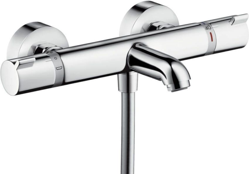 Ang isang tanyag na modelo ay ang panghalo ng dobleng pingga ng Hansgrohe Ecostat 13114000 na may termostat. Ang katawan ng aparato ay gawa sa tanso. Ang modelo ay nilagyan ng mahabang spout at hand shower para sa komportableng shower. Ang aparato ay naayos sa dingding. Maaari kang bumili ng tulad ng isang taong magaling makisama mula sa 9.8 libong rubles.