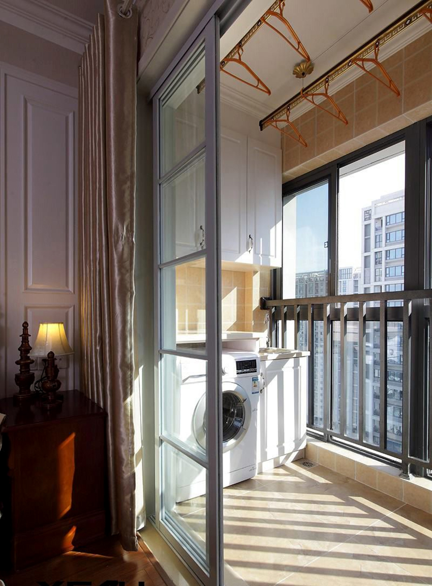 Balkon dolaplarının birçok fotoğrafında, yapının maliyetini düşürmek için, rafların içeriğini genel kullanılabilirlikten gizleyen kapılar yerine perdelerin veya panjurların takıldığını görebilirsiniz.