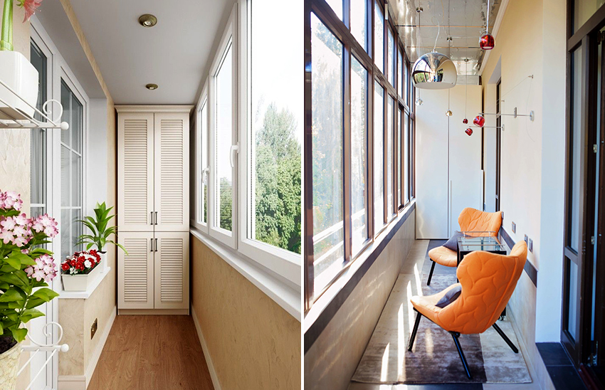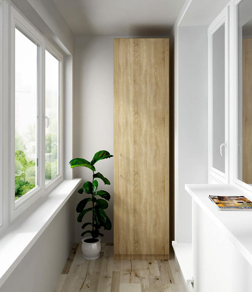 Balkonda gardırop: odada ergonomi ve işlevsellik garantisi
