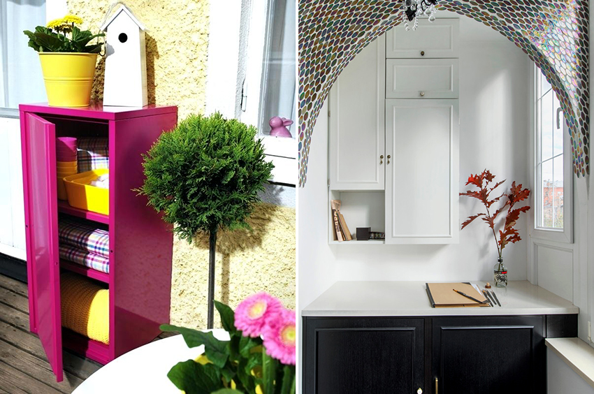 Bir dolap kullanarak balkon tasarımı oluşturmak için bazı ilginç fikirler