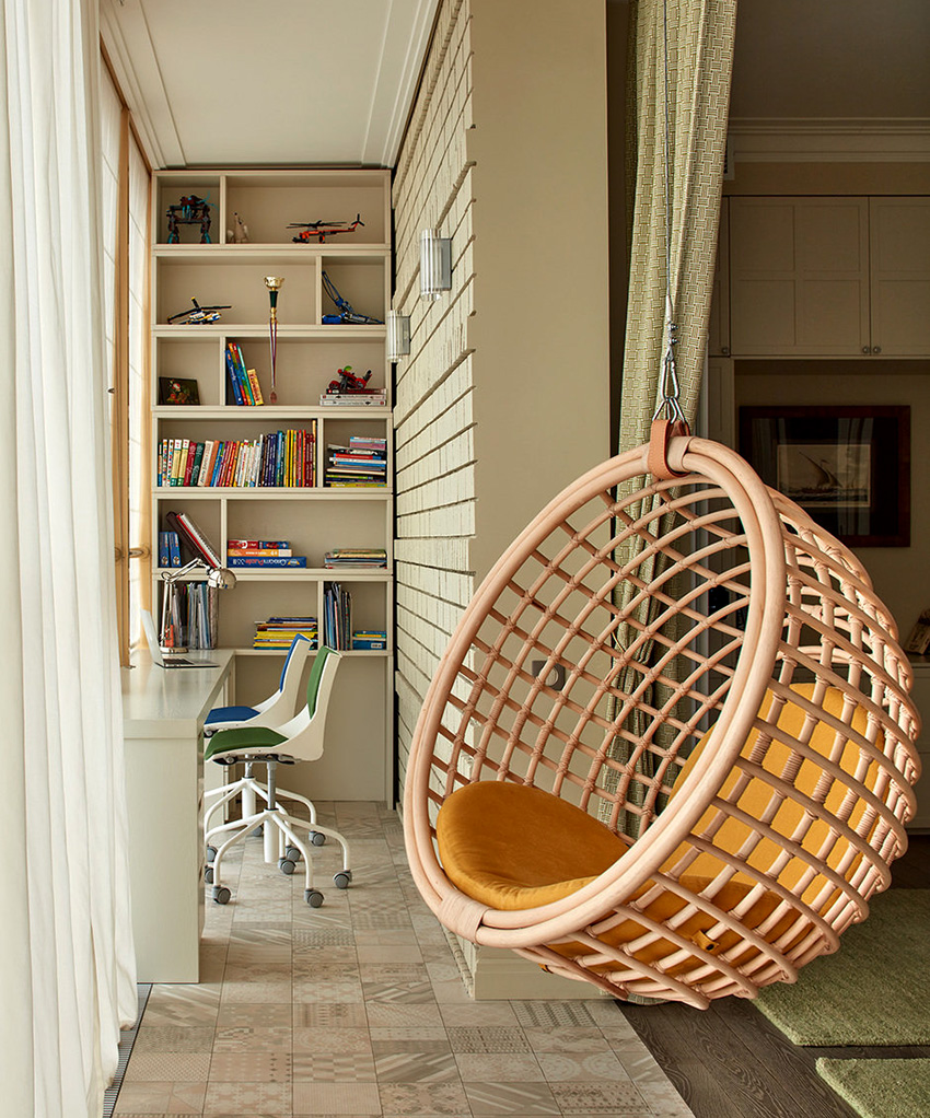 Odadaki geniş bir gardırop, çeşitli eşyalar için ek depolama alanı yaratır ve bu da dairede yer açmayı mümkün kılar. Aynı zamanda balkon çekiciliğini yitirmez ve hatta daha temiz ve bakımlı bir görünüm kazanır.
