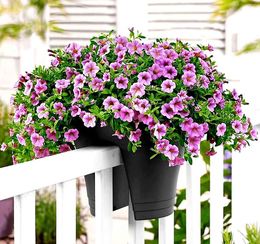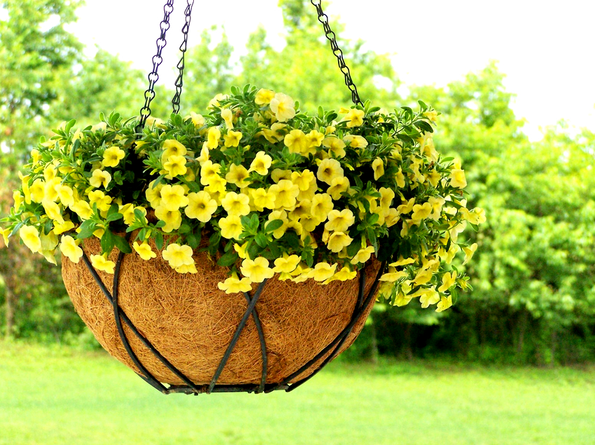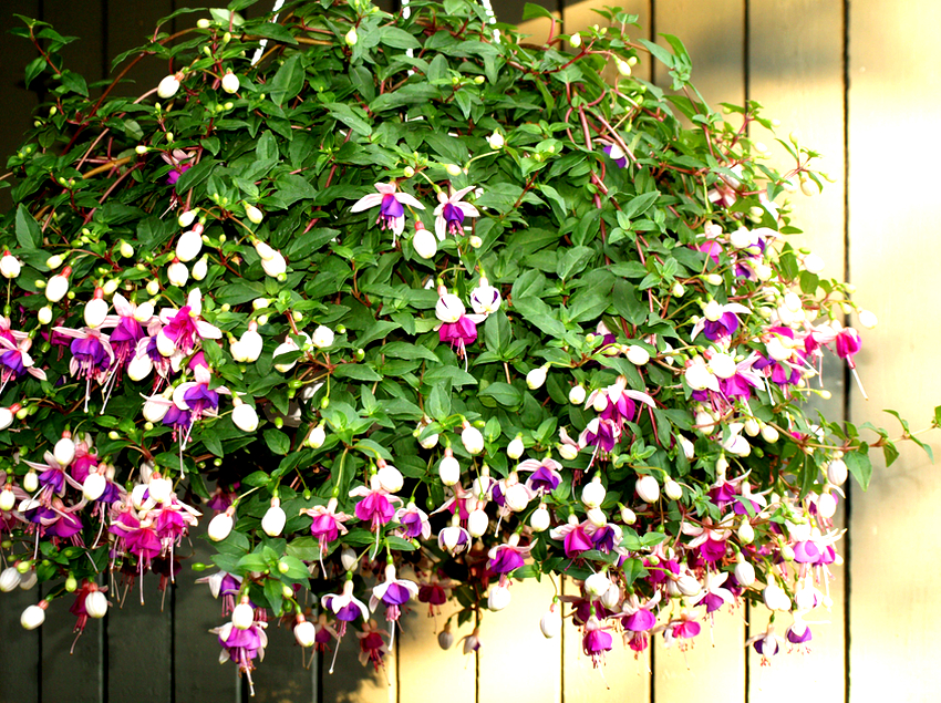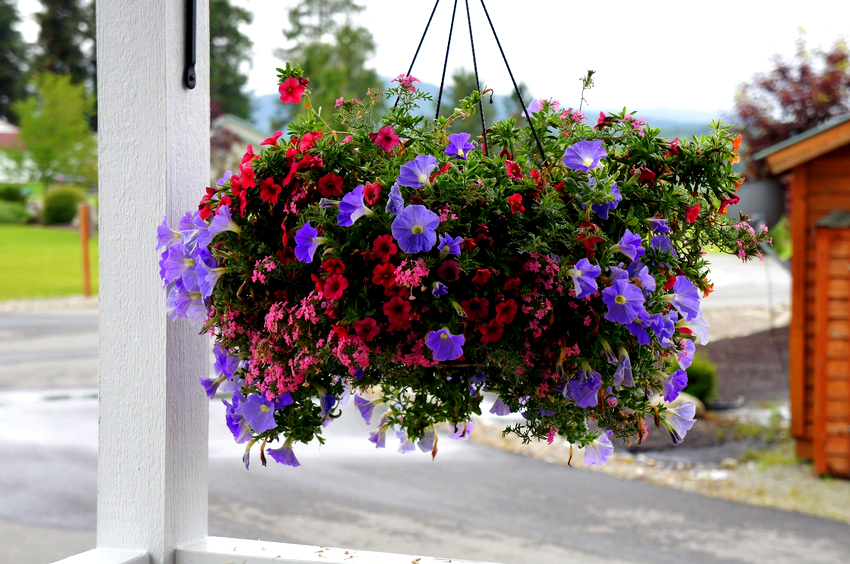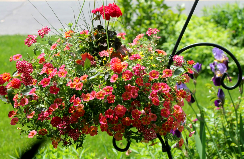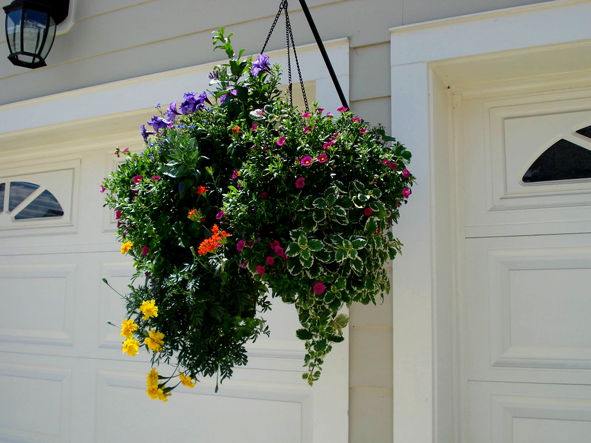 Saksılar için bol çiçekler: çeşitli şekil ve renklerde asılı