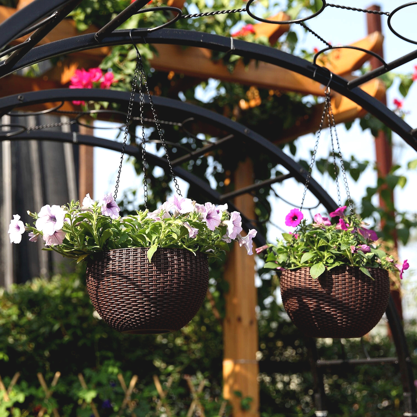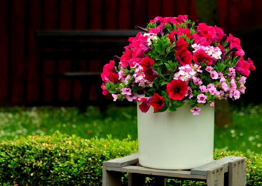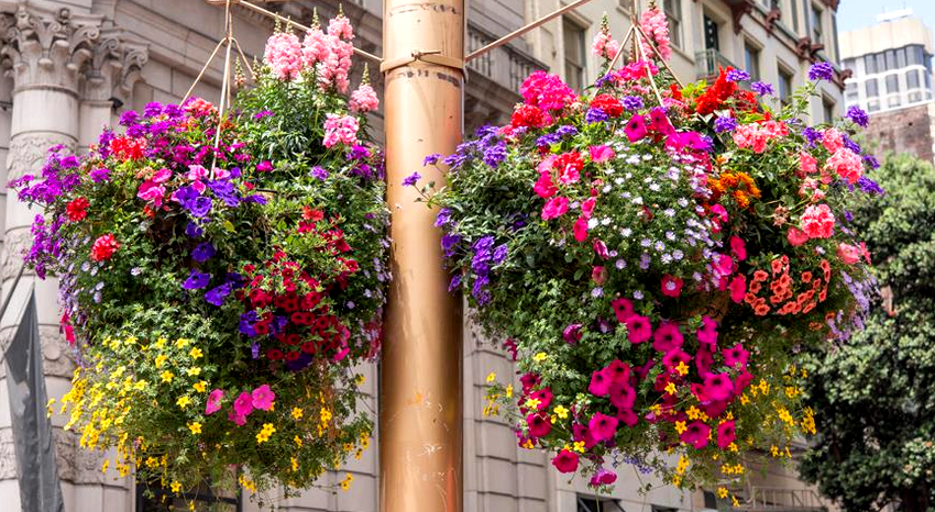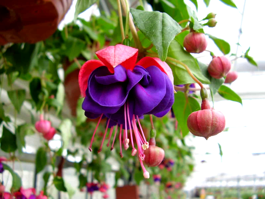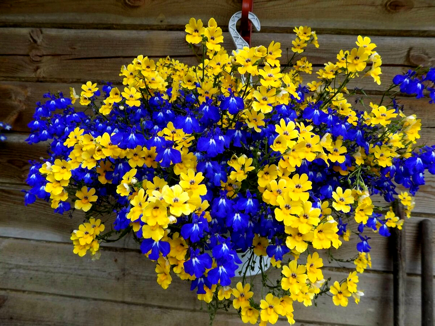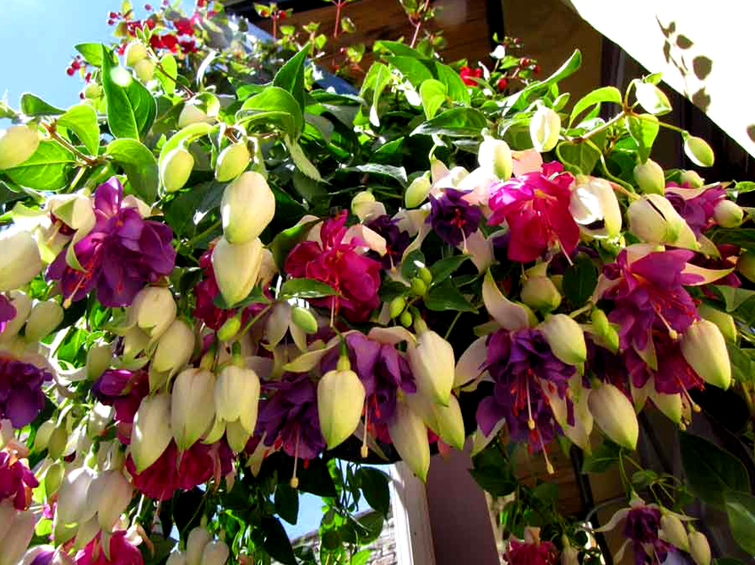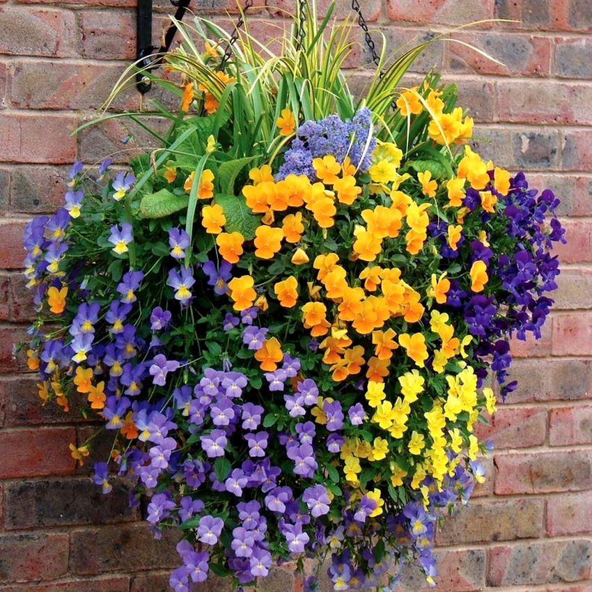 Saksılar için bol çiçekler: çeşitli şekil ve renklerde asılı