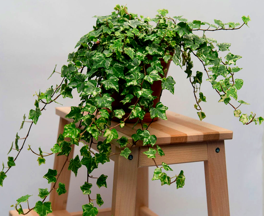 5. Ivy beşinci konumda. Canlı renklere sahip bitkiler için harika bir zemin oluşturur. Farklı sarmaşık türleri, yaprakların renginde farklılıklar gösterir: koyu yeşil, beyaz çizgili yeşil, beyaz lekeli yeşil vb. Bitki çok yıllıktır, özel bakım gerektirmez, gölgeli bir yerde bile kendini iyi hisseder.