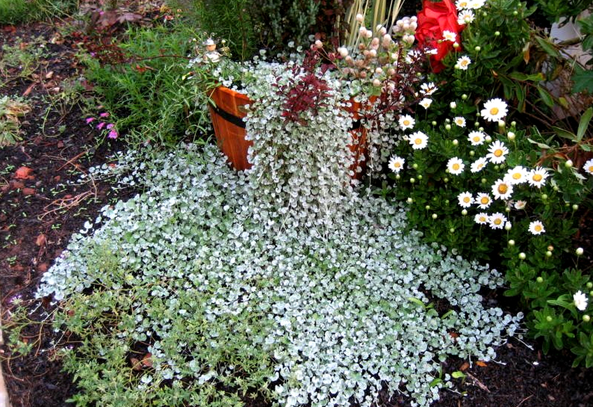 Çoğunlukla, saksılar için bu bol çiçekler (internetteki fotoğraflar bunu açıkça göstermektedir), diğer çiçekli bitkilerin parlaklığını gölgelendiren ve vurgulayan bir arka plan olarak arazilerin tasarımında kullanılır. Belirli bir sıraya göre düzenlenmiş birkaç dikondra bir çadır, çit ve diğer hacimsel figürler oluşturabilir.