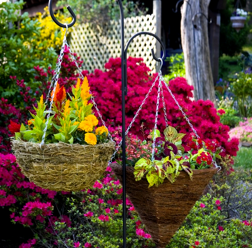 Yörenin çiçek aranjmanlarıyla süslenmesi tanıdık bir olgudur. Bazen kişisel arsa üzerinde, sadece çiçeklenme zamanında neşeli ve zarif görünen bir bahçe vardır. Ancak yayılan ağaç taçlarının arasında küçük bir rekreasyon alanı düzenlenerek sarkan çiçeklerle de süslenebilir. Aşağıdaki fikirleri kullanabilirsiniz.