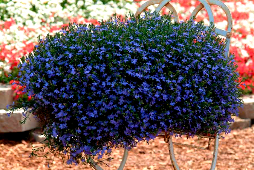 3. Üçüncü sonuç lobelia içindir. Düzenli sulama gerektirir, sıcaklığı sever. Çiçekler küçüktür ve beyaz, mavi veya pembe olabilir. Bu bitki aynı zamanda bordür olarak da ekilebilir.