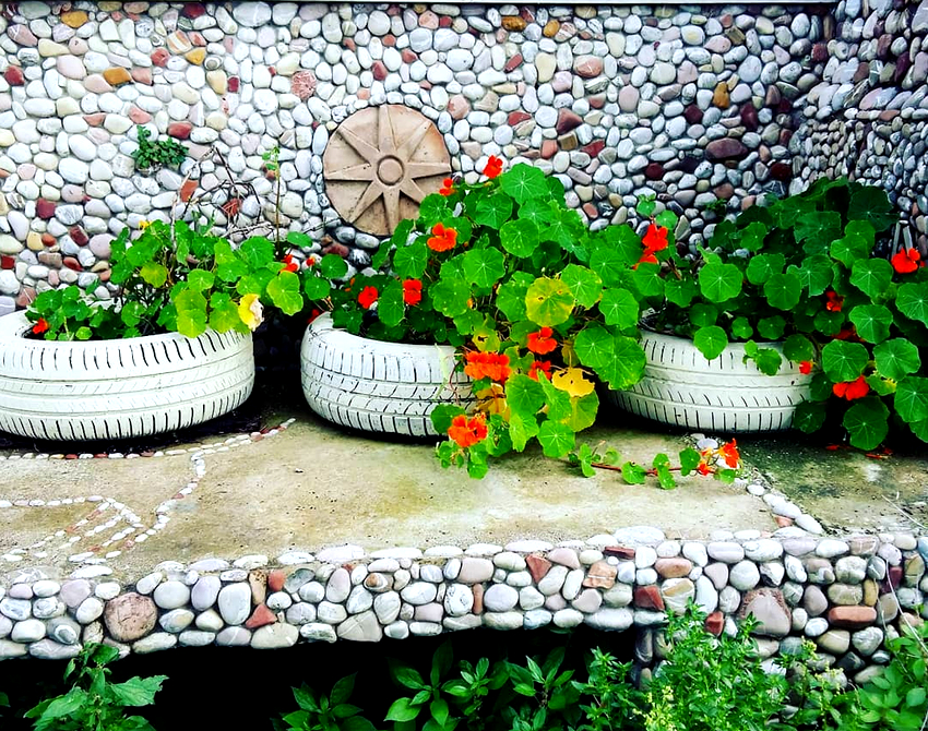 Bahçenin açık alanlarında eski küvetler (ve isterseniz yenilerini) düzenleyebilir ve üzerlerine çiçekli saksılar yerleştirebilirsiniz. Böyle bir bahçede yürümek çok zevk getirecek.