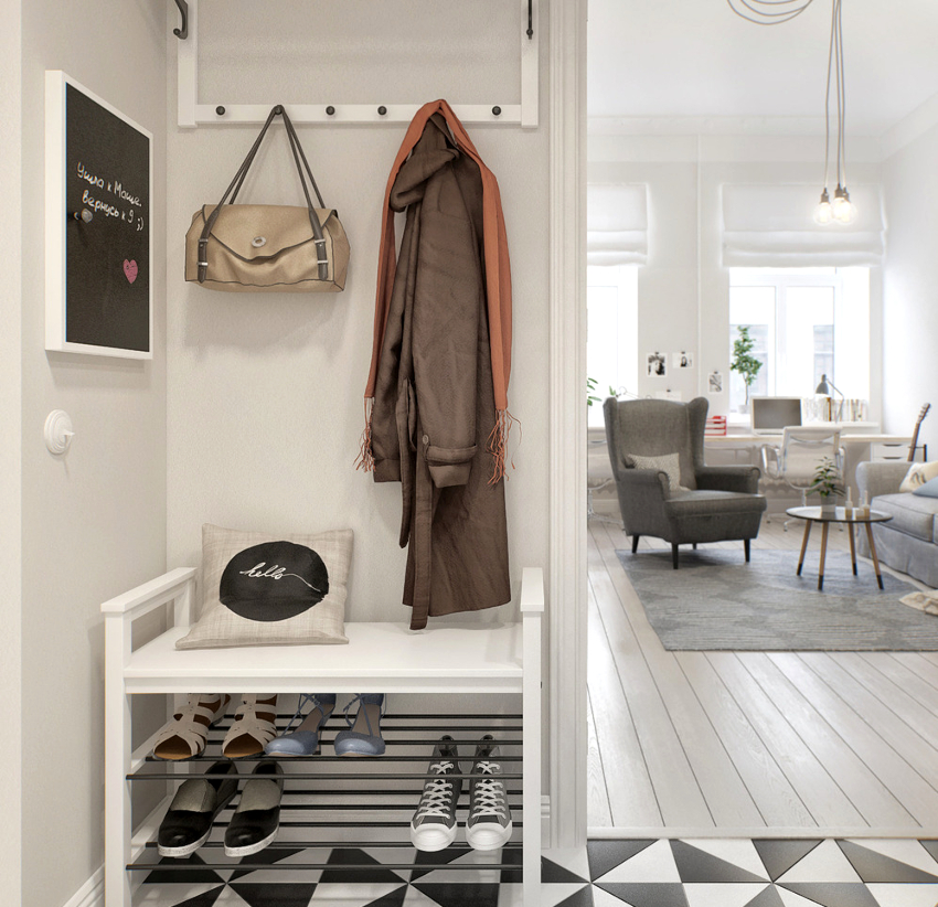 Koridorda neredeyse hiç boş alan olmadığından, her bir eleman çok işlevli olmalıdır. Bu nedenle, postaları ayırmak için aynı anda anahtarlar ve çantalar için küçük bir dolap kullanılabilir ve ayakkabıların saklanması için küçük bir dolap, rahat ayakkabı giymek veya ayakkabı çıkarmak için bir sandalye görevi görebilir.