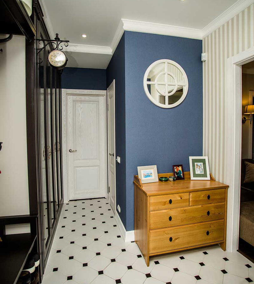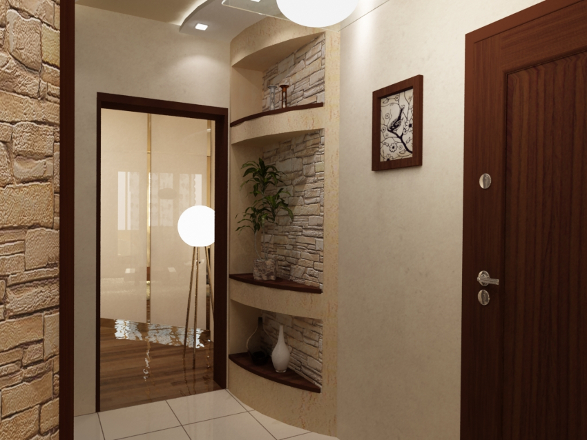 Yararlı tavsiye! Çoğu apartmanın yerleşimi öyledir ki, bu belirli oda, dairedeki geri kalan odalar arasındaki bağlantı elemanıdır. Bu nedenle, koridorun tasarımı, odaların geri kalanının içi ile örtüşmelidir.