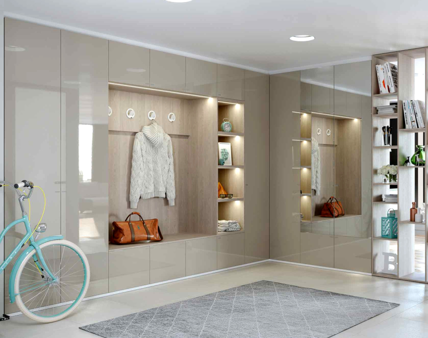 Küçük bir koridor için harika bir seçenek modüler sistemlerdir. Topluluğun tüm bölümleri aynı stil ve renkte yapıldığı için bu tasarımlar, mobilya seçme sürecini çok daha kolaylaştıracak.