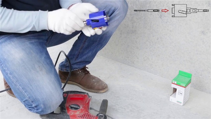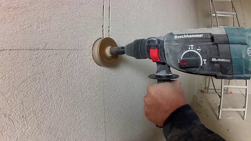Khi tạo các lỗ có đường kính và độ sâu đáng kể, máy khoan có thể được giữ chặt bằng các neo. Vị trí này thúc đẩy quá trình khoan chính xác hơn, không tạo ra nhiều bụi, ngăn chặn hiện tượng giật xilanh và giảm tiếng ồn. Các lỗ cho hộp ổ cắm thường được làm thủ công.