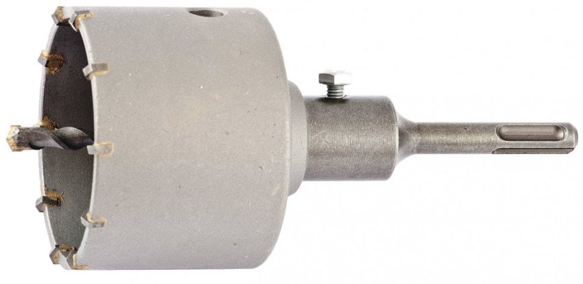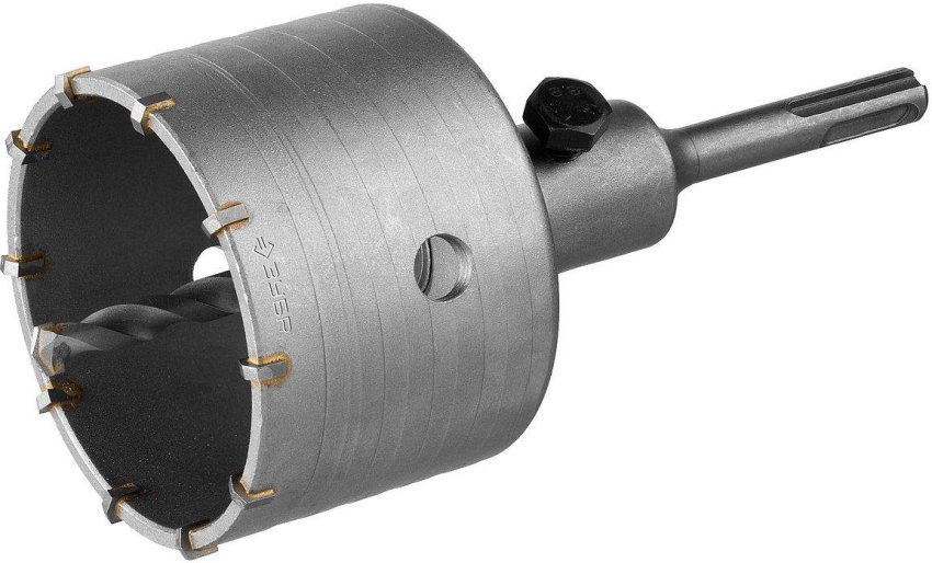 Trong các tùy chọn cacbua (chiến thắng), các dao cắt được đặt ở góc âm 7 °. Sự sắp xếp này làm giảm cường độ của tải trọng động lên vòi phun, giảm ảnh hưởng của đập hướng tâm và kết thúc. Phần đính kèm này có thể được sử dụng cho búa quay có công suất từ 850 W trở lên. Hệ thống SDS Plus được sử dụng như một giá đỡ.