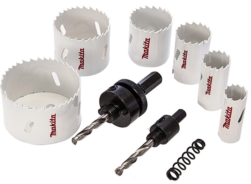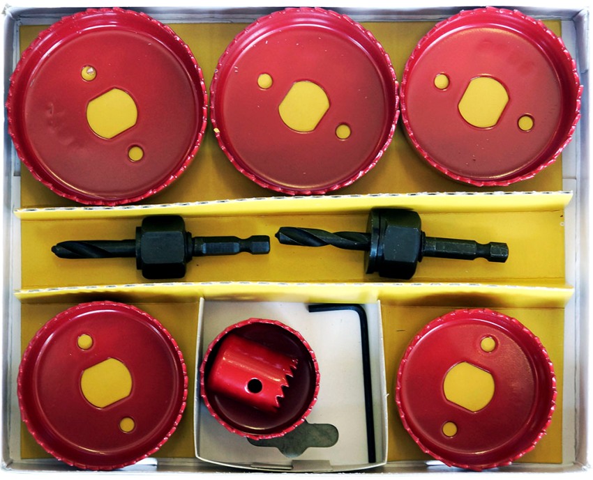 Các đơn vị của bộ dụng cụ được đặt thuận tiện trong một hộp nhựa nhỏ gọn, ở mặt trong của phần trên có sơ đồ lắp ráp chi tiết của vòi phun. Bộ tiêu chuẩn bao gồm các vật dụng sau: cưa 5 lỗ, mũi khoan tâm, chuôi lục giác, tấm đậy và cờ lê. Bộ dụng cụ có thể có các kích thước mũi khoan khác nhau: từ 64 đến 102 mm, từ 33 đến 83 mm, v.v.
