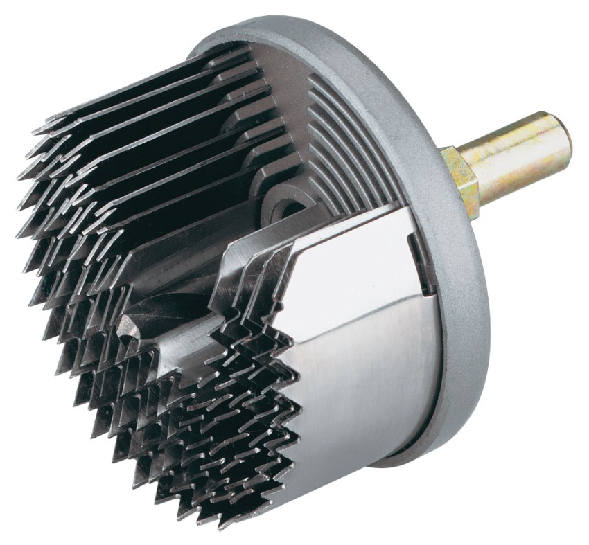 Các cuộc tập trận Forstner. Các cánh bên nằm trong một vòng tròn. Công cụ cho vết cắt rất sạch, được làm bằng thép cacbon bền;