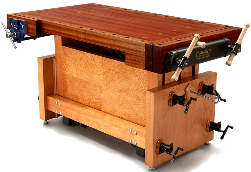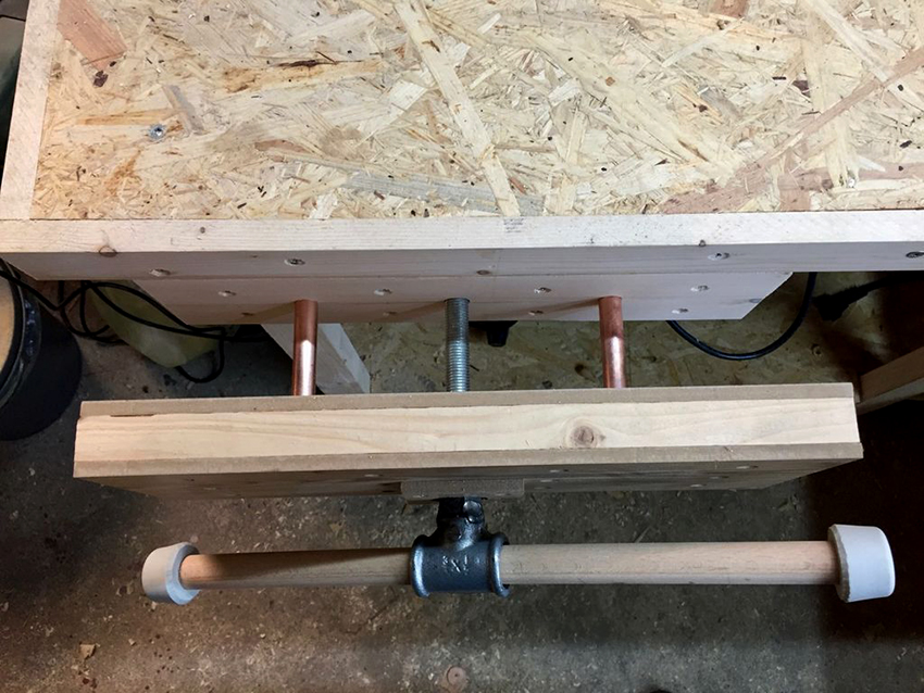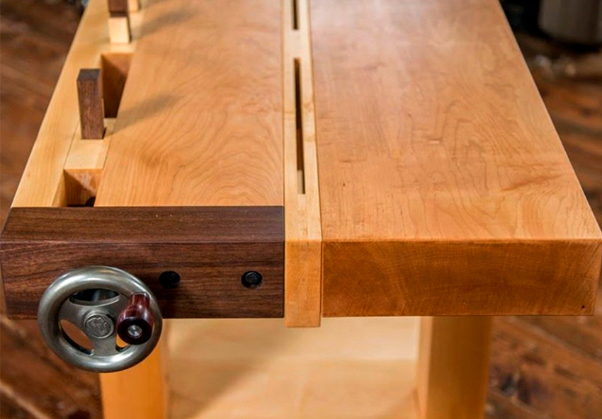 Mặt bàn của xưởng, cũng như các hàm của vise, làm bằng gỗ, có lỗ. Chúng được sử dụng để cài đặt các điểm dừng và kẹp, có thể có chiều cao và kích thước phần khác nhau.
