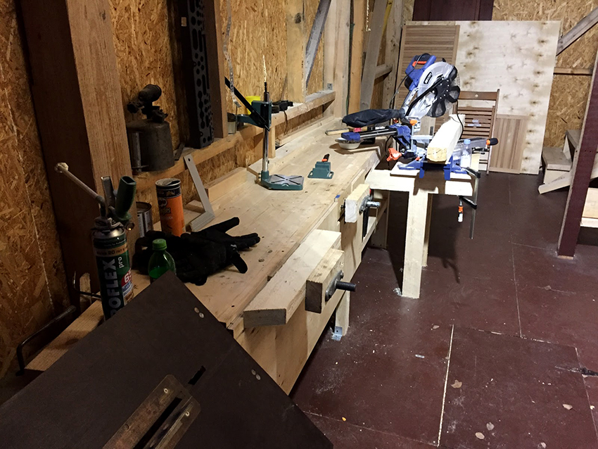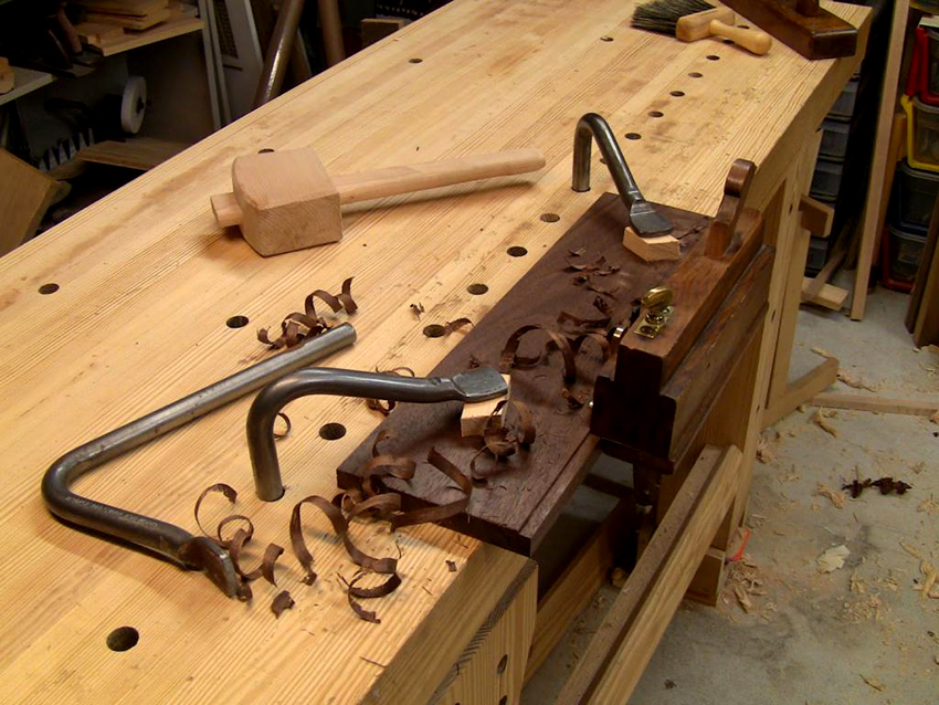 Bàn làm việc của một người tham gia là một chiếc bàn để một người thợ thủ công chế biến các sản phẩm gỗ