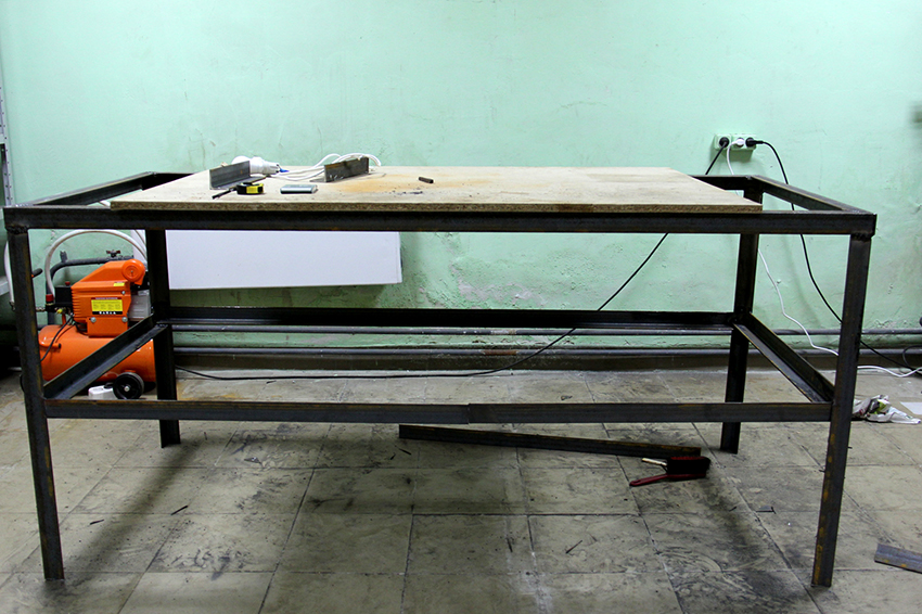 Lời khuyên hữu ích! Trong quá trình làm việc với các thanh gỗ, bạn có thể vô tình làm hỏng tấm bìa bằng dụng cụ điện. Để tránh điều này, có thể làm thêm sàn cho mặt bàn làm việc từ ván ép hoặc ván sợi. Nó được cắt theo hình dạng và kích thước của nắp. Sẽ tốt hơn nếu sàn bảo vệ được làm cùng với bàn làm việc.