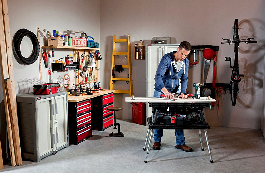 Thông thường, có rất ít không gian trống trong ga ra hoặc xưởng. Theo khuyến nghị của các chuyên gia, cấu trúc gấp được ưu tiên khi tự làm bàn làm việc. Chúng chủ yếu là cố định và thường được lắp đặt gần tường. Trong trường hợp này, tốt hơn là sử dụng khu vực góc của căn phòng hoặc khu vực ít bị chiếm dụng nhất.