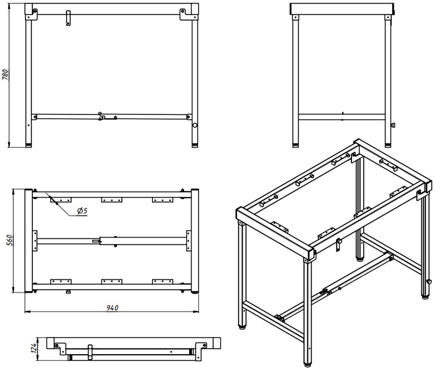 Trước hết, cơ sở được lắp ráp. Nó bao gồm một tấm đế nơi sẽ lắp đặt một bộ ngăn kéo, một khu vực mở cho thiết bị và chất làm cứng để gia cố cấu trúc. Để làm điều này, bạn cần phải lắp ráp khung và cố định tấm trên đó. Để sửa chữa, hãy sử dụng ốc vít M50.