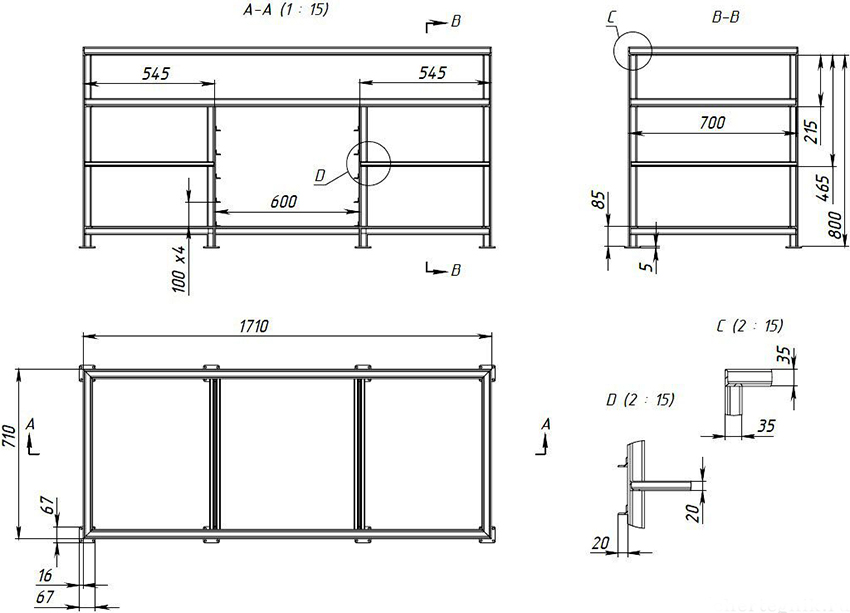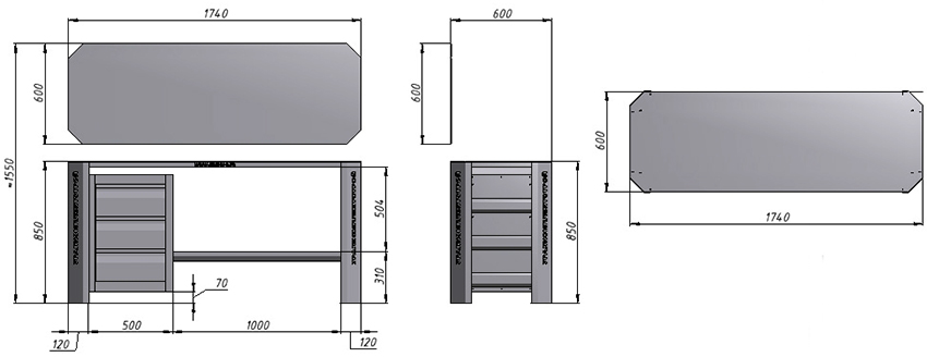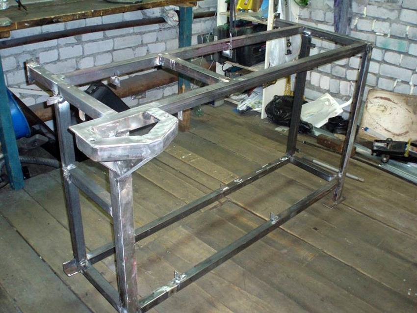 Cũng cần lưu ý rằng mặt phẳng bên ngoài của bệ bên trái, được sử dụng như một giá đỡ, dài hơn phần bên trong của nó. Để làm cho bàn làm việc tự làm cứng cáp hơn, phần tử này phải được cố định không phải trên tấm đế mà được cố định trên khung. Bản thân các tủ được lắp đặt trên một tấm đế. Đối với điều này, hai loại ốc vít được sử dụng. Mặt phẳng đáy được cố định bằng vít M20-M24. Sử dụng các góc cho các mặt bên trong.