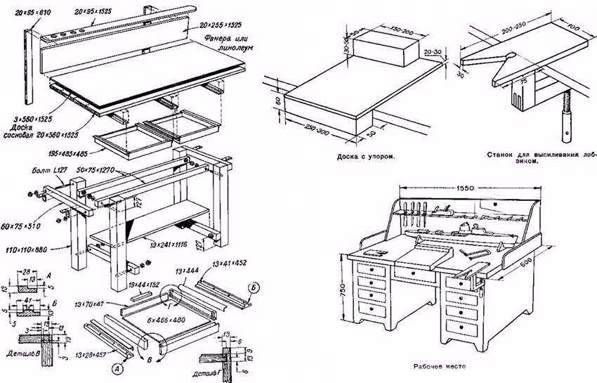 Ghi chú! Bàn làm việc của thợ ghép truyền thống được thiết kế để làm việc với gỗ, chiều dài của chúng không vượt quá 3-3,5 m. Để làm việc với các phôi dài hơn, bạn sẽ phải sử dụng bàn làm việc của thợ mộc.