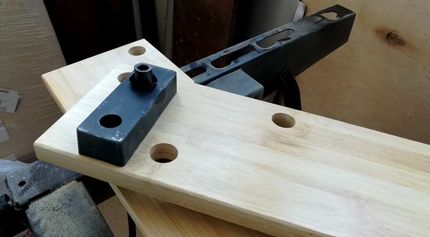 Trước khi làm việc, các điểm dừng được đặt trong một cấu hình nhất định để bộ phận có thể được đặt giữa chúng ở vị trí cần thiết. Sau khi phôi được lắp đặt, nó được nén bằng cách sử dụng cơ cấu trục vít được trang bị. Thiết kế này cho phép bạn cố định chắc chắn phần gỗ ở vị trí nằm ngang.