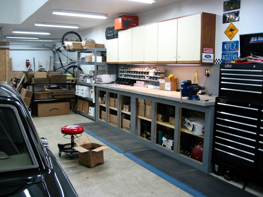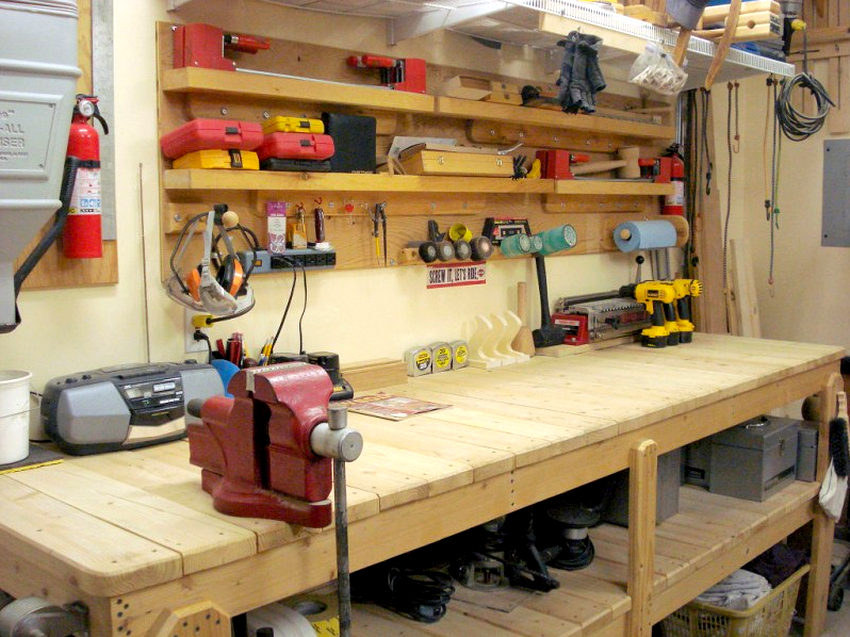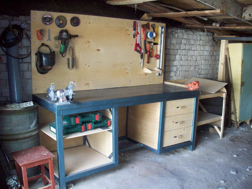 Các loại bàn làm việc trong nhà để xe: ảnh của các cấu trúc cho các mục đích khác nhau