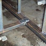 Ở giai đoạn tiếp theo, các cột dọc phải được làm từ một góc thép và kết nối với phần khung. Nếu sàn trong nhà để xe rải sỏi, để bàn làm việc ổn định hơn, các giá đỡ đặc biệt (đồng xu) phải được hàn vào chân của nó. Trong các phòng có sàn bê tông, bàn làm việc được cố định bằng bu lông neo. Đối với điều này, nó cũng sẽ cần thiết để cung cấp cho các yếu tố tương ứng trong thiết kế.