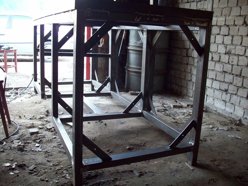 Quan trọng! Nếu bàn được sử dụng để gia công các chi tiết lớn có kích thước lớn thì khung của nó phải được gia cố bằng các khớp chéo.