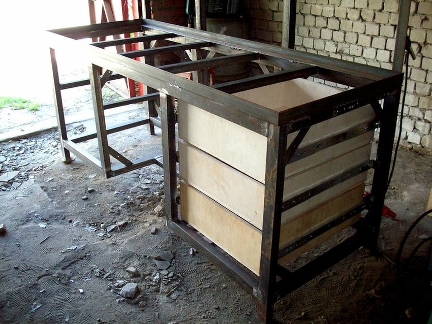 Cách tự tay bạn lắp ráp bàn làm việc bằng kim loại trong ga ra: ảnh và công nghệ từng bước