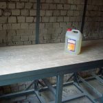 Sau khi tạo thành phần khung của bàn làm việc, bề mặt làm việc được lắp ráp từ các tấm ván và một tấm ván ép