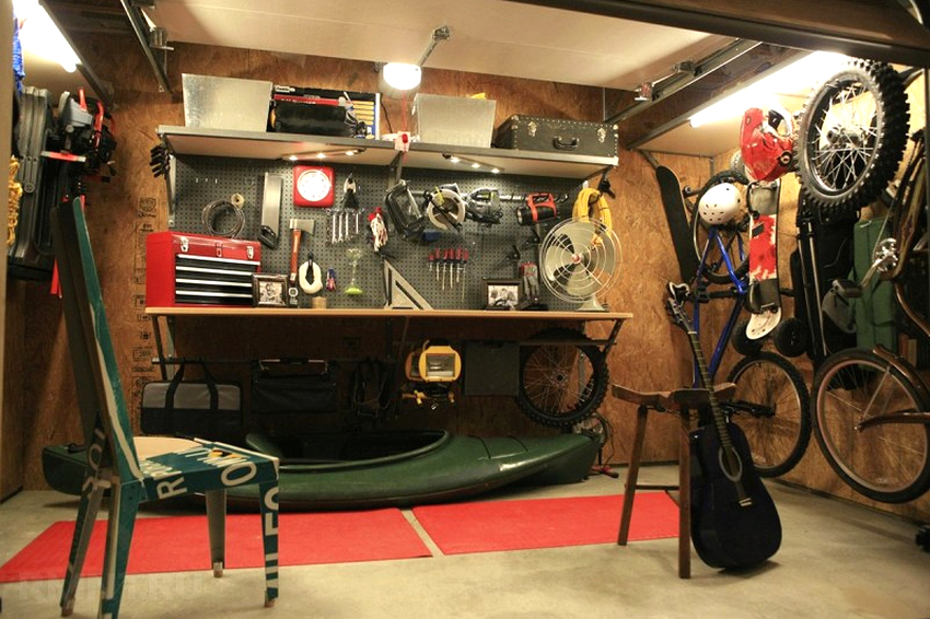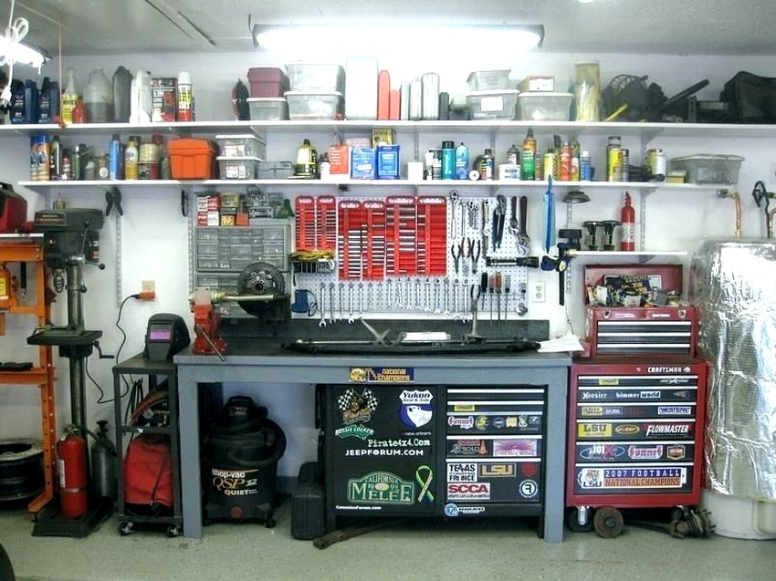 Lời khuyên hữu ích! Vẫn có thể tổ chức không gian lưu trữ dụng cụ trong một không gian chật hẹp. Ví dụ, sử dụng life hacks cho nhà xưởng gara, bạn có thể dễ dàng lắp đặt ray chịu lực với ngăn kéo bằng tay hoặc bổ sung mặt bàn gấp có bệ trên bánh xe có thể dễ dàng di chuyển đến nơi khác khi bàn làm việc không sử dụng.