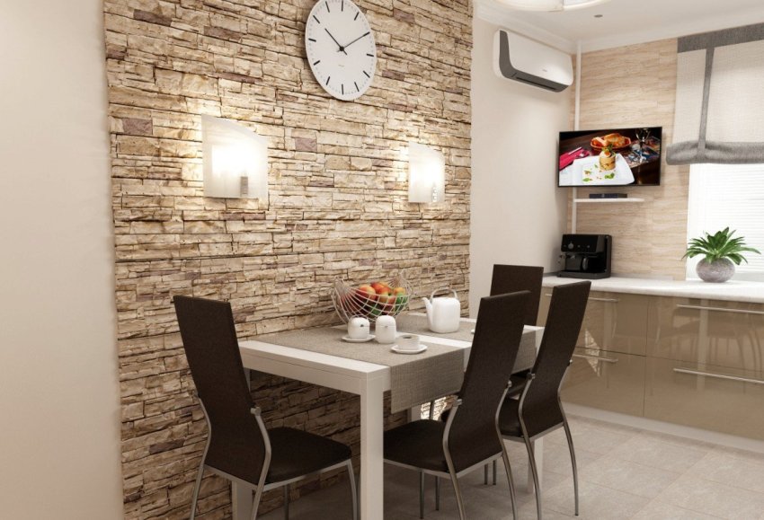 Lời khuyên quan trọng! Đá trang trí làm nền chính không nên sử dụng ở tất cả các phòng, trừ khu vệ sinh và hành lang. 2-3 yếu tố với cùng một tấm ốp trang trí trông tuyệt vời.