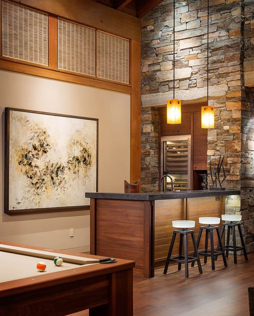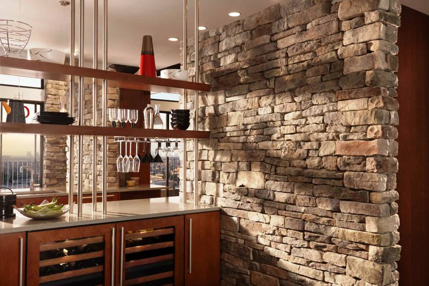 Tường bằng đá sẽ cho phép bạn ngay lập tức đặt các điểm nhấn trong nội thất và tăng thêm chi phí cao cho căn phòng